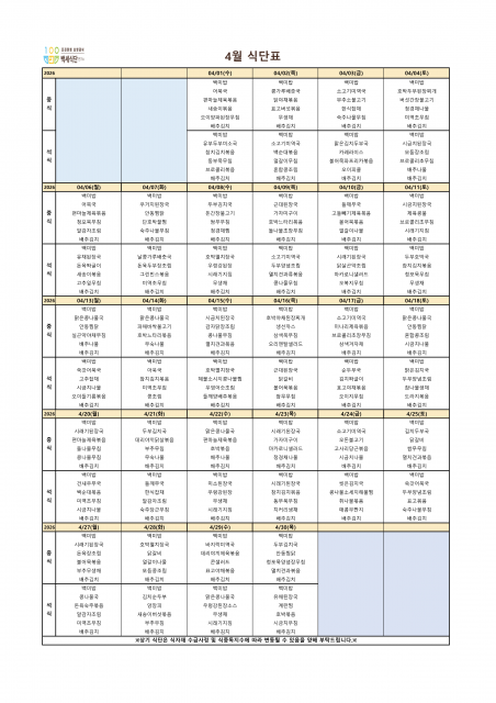2026년 4월 식단표